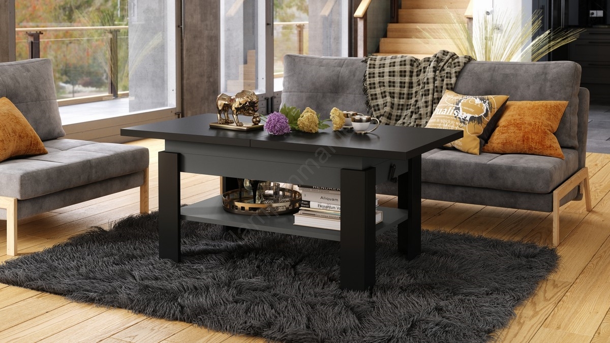• Uitschuifbare salontafel/eettafel met hefblad ROY zwart/antraciet