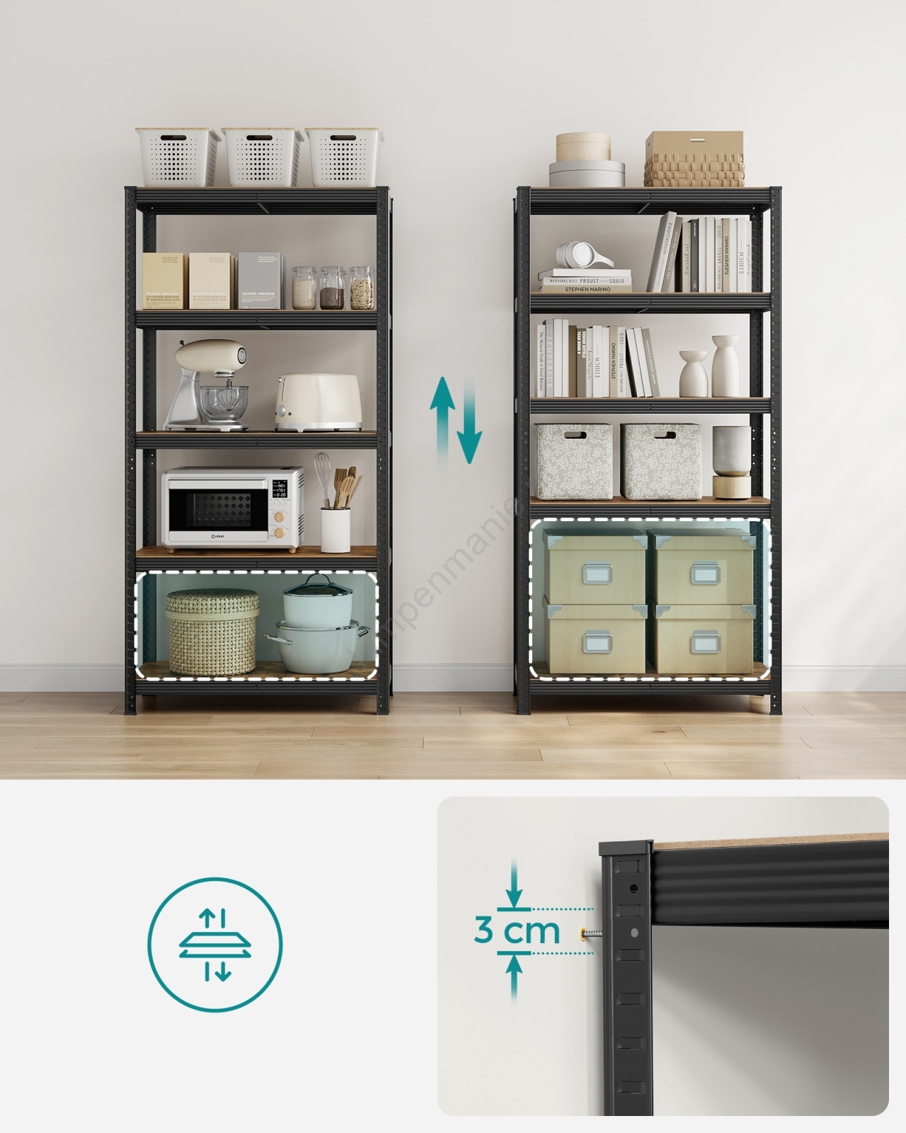 • De planken bieden royale opbergruimte voor het organiseren van dagelijkse benodigdheden.