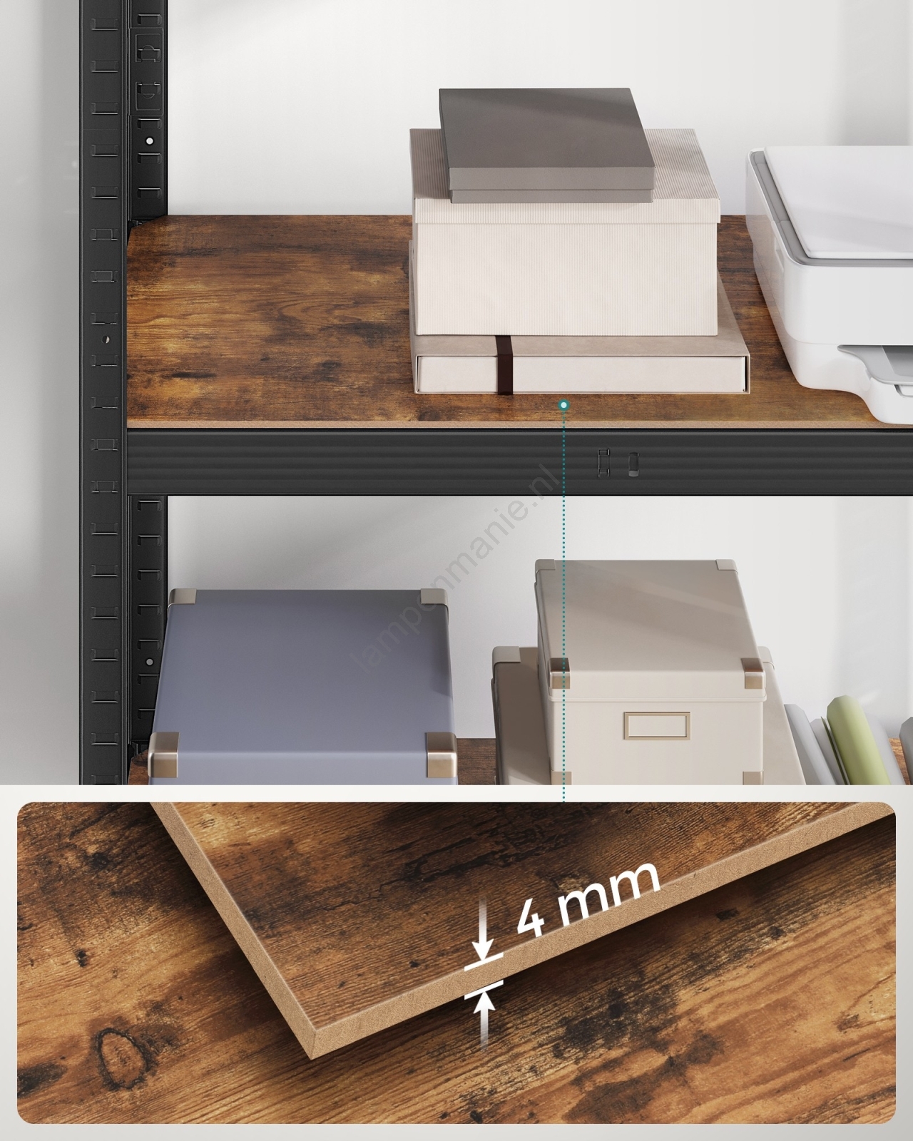 • Elke plank kan tot 175 kg dragen en is geschikt voor verf, gereedschap en fitnessapparatuur.