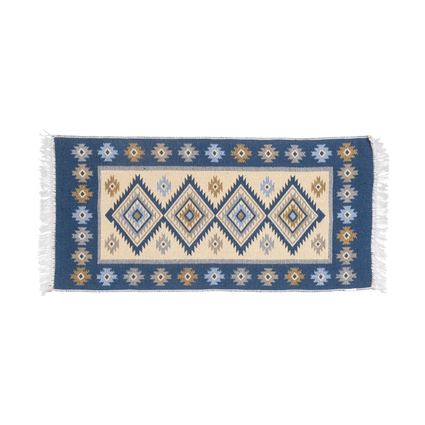 Omkeerbaar oosters vloerkleed KILIM 80x150 cm blauw/beige