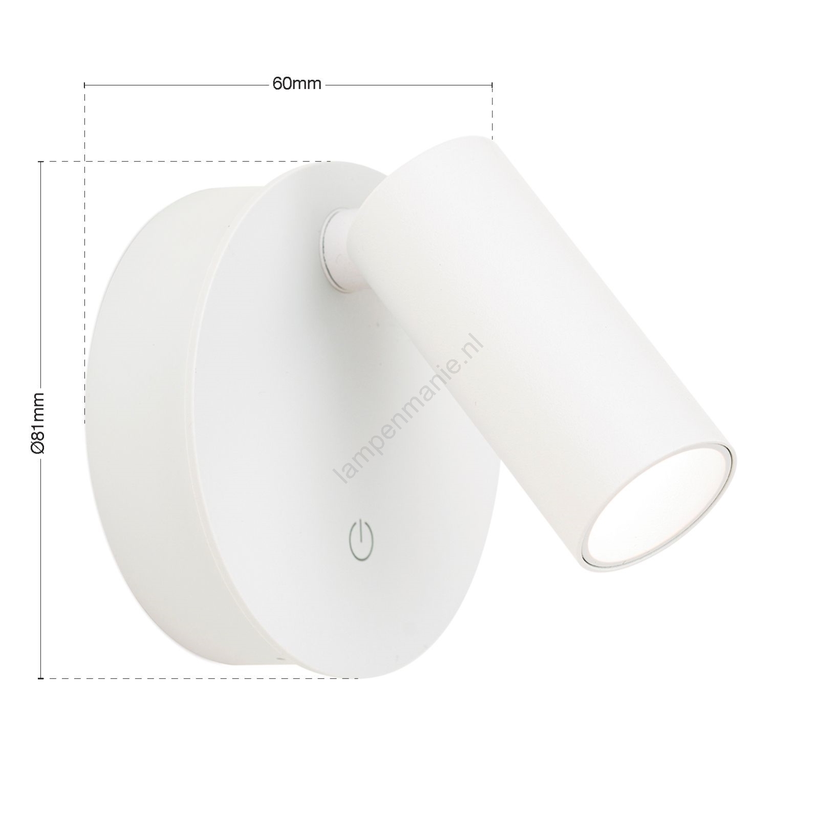 Dimbare oplaadbare LED-wandspot met aanraakbediening LUXY LED/1W/5V 2200 mAh 2700/3000/4000K wit