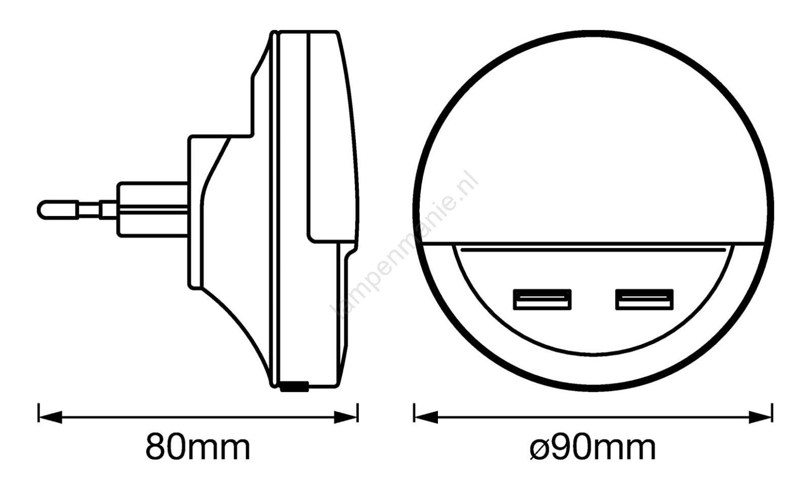 Osram - LED-nachtlampje voor in het stopcontact met sensor LUNETTA, 2x USB, LED/13W/230V