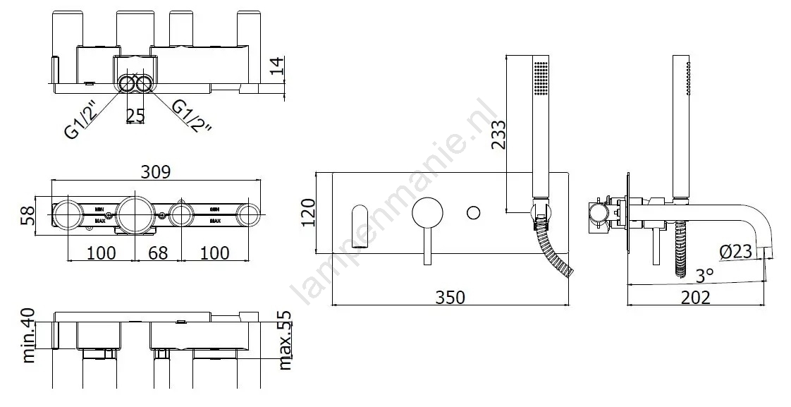 • Inclusief inbouwlichaam voor een nette wandmontage.