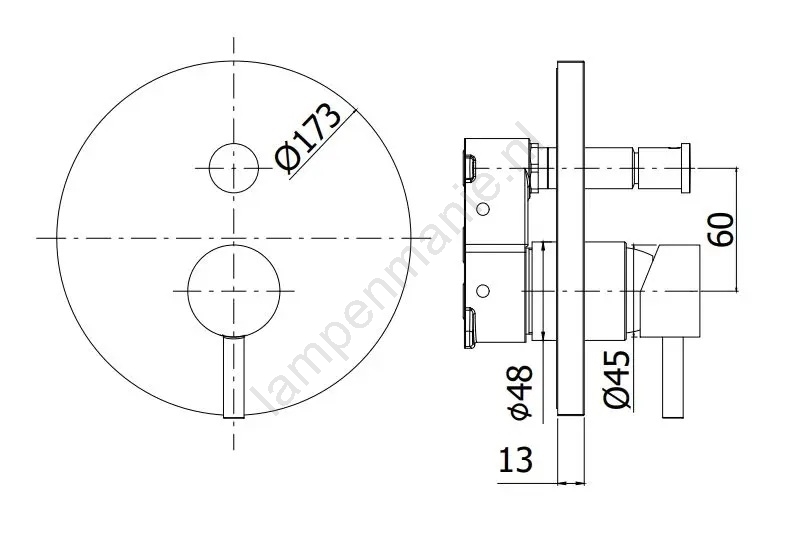 • Inbouwdouchekraan met omschakelaar voor selectie van de wateruitgang.
