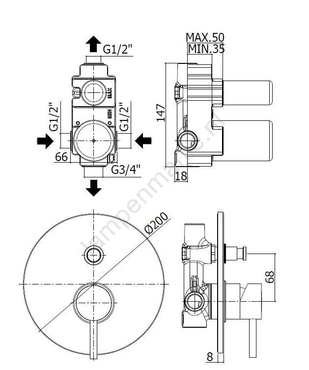 • Geïntegreerde omsteller voor het omleiden van water tussen de uitgangen.