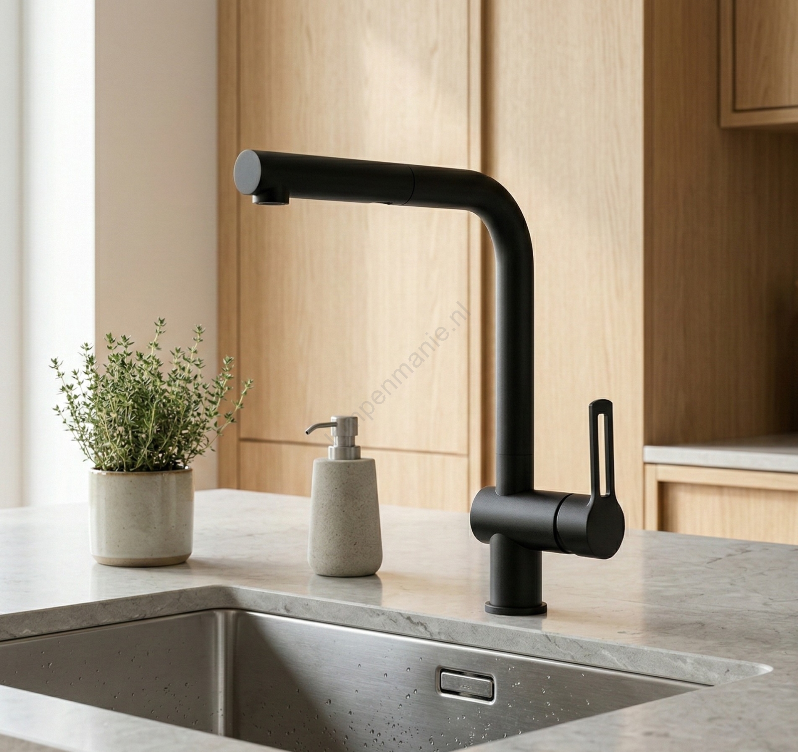 • Matte zwarte afwerking voor een strakke, moderne uitstraling in uw keuken.