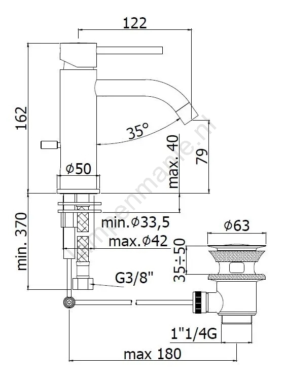 • Staande wastafelkraan met waste.