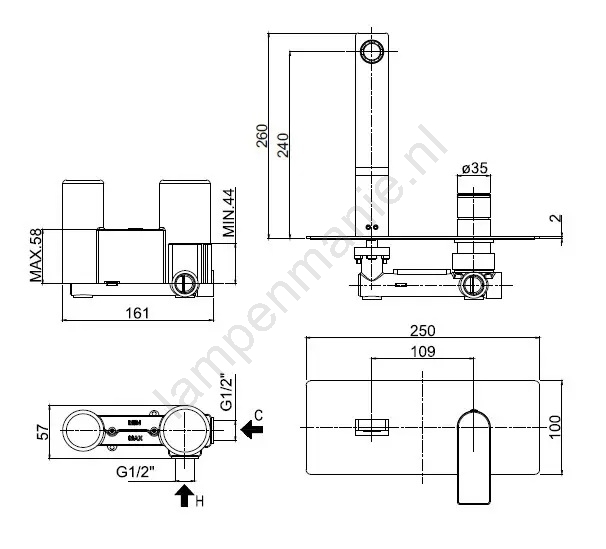 • Inclusief inbouwlichaam voor montage in de muur.