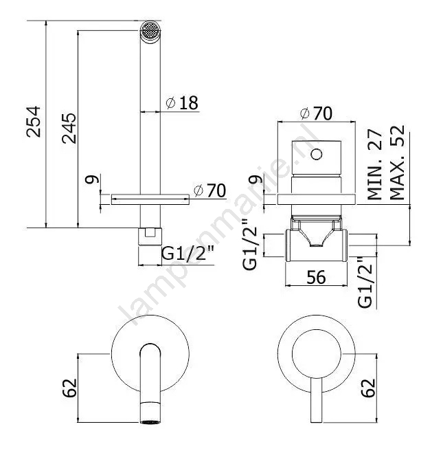 • Wordt geleverd inclusief inbouwdeel voor wandmontage.