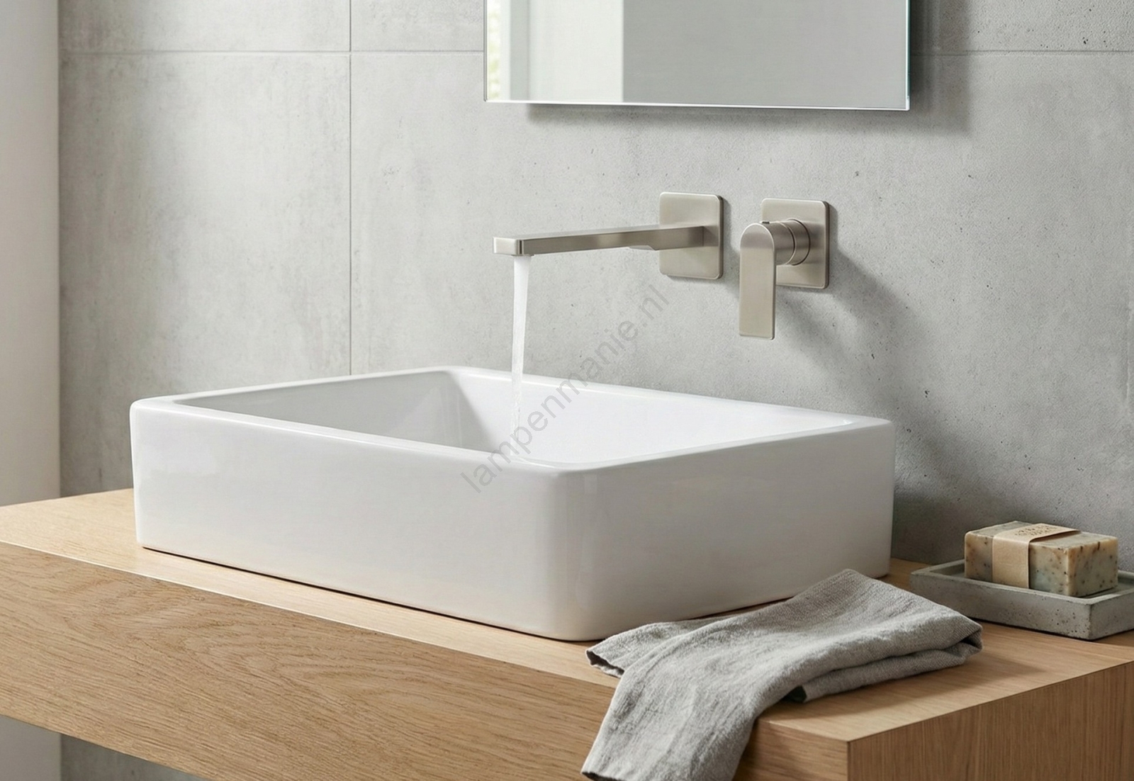 • Wandmontage voor een strakke uitstraling bij de wastafel.