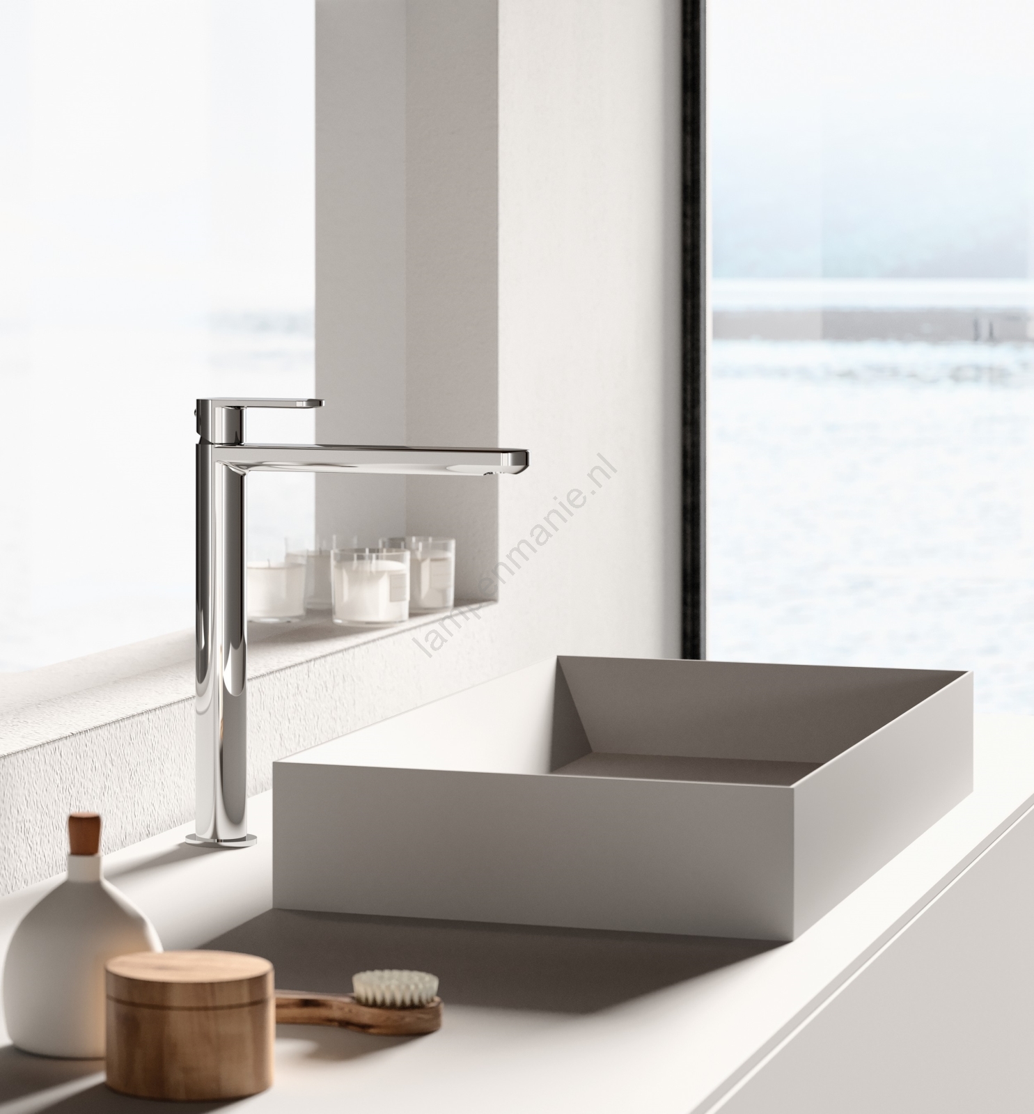 • Hogere uitvoering van de kraan – meer ruimte boven de wastafel.