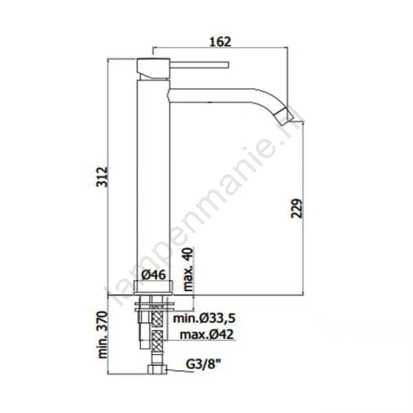 • Hoog model wastafelkraan met hendelbediening.