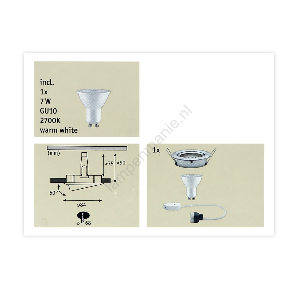 Paulmann 93603 - LED-GU10/7W IP23 Dimbare Badkamer Inbouw Lamp NOVA 230V