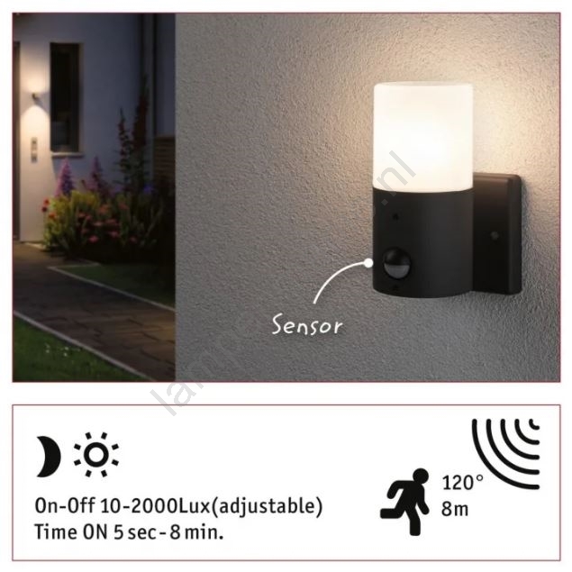 Paulmann 94648 - 1xE27/15W IP44 Wandlamp voor buiten met sensor TUBS 230V