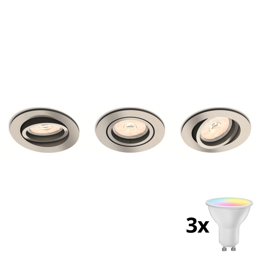 • Philips - SET VAN 3 dimbare LED RGBW inbouwspots 1x GU10/4,8W/230V mat chroom + afstandsbediening
