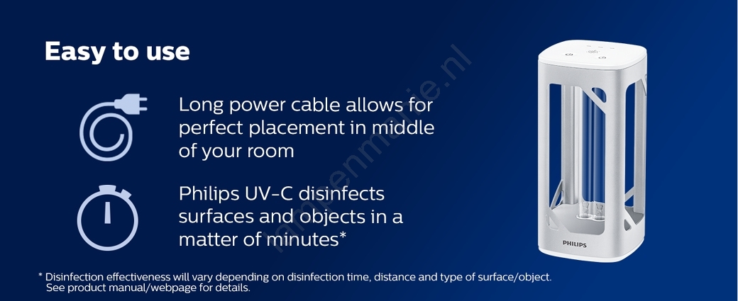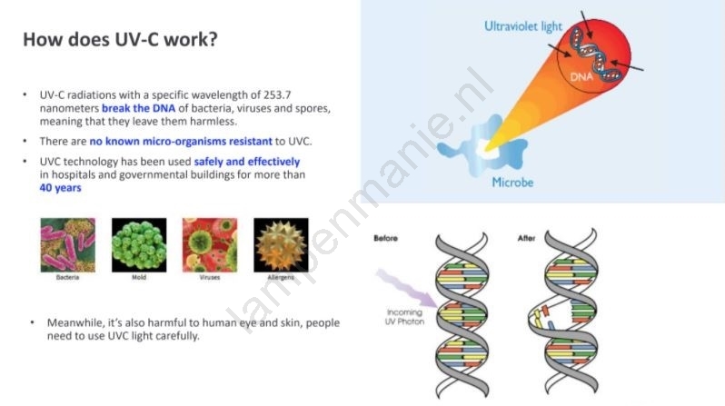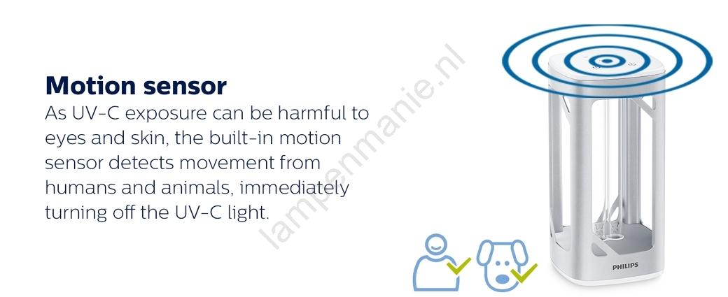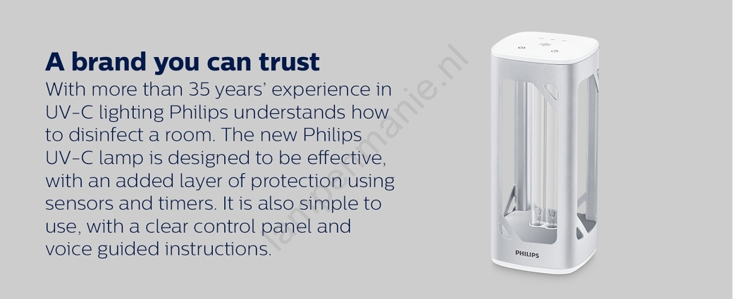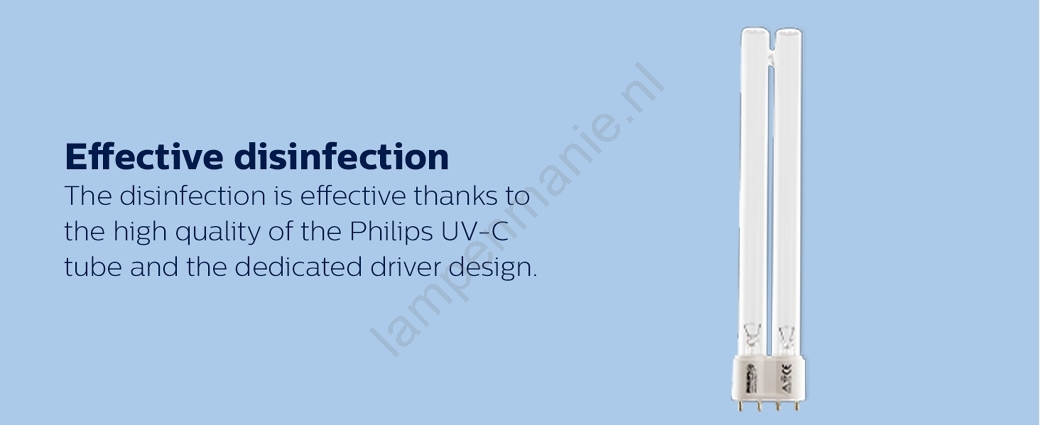 Dit product bevat kwik. Het product straalt ultraviolet licht uit, wat gevaarlijk is. Het is niet bedoeld voor algemeen gebruik als verlichting. De straling van deze lichtbron is schadelijk voor de huid, slijmvliezen en ogen. Om gezondheidsproblemen (verwondingen, brandwonden, ziekte) te voorkomen, moet directe en indirecte blootstelling aan het licht worden vermeden. Germicide lampen mogen niet direct ruimtes bestralen waar mensen, dieren of planten aanwezig zijn. Na sterilisatie wordt geadviseerd 20-30 minuten te ventileren.