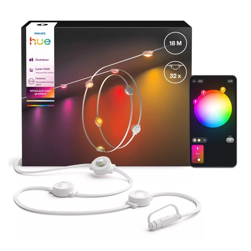 • LED buitenslinger Philips Hue met een lengte van 18 m.