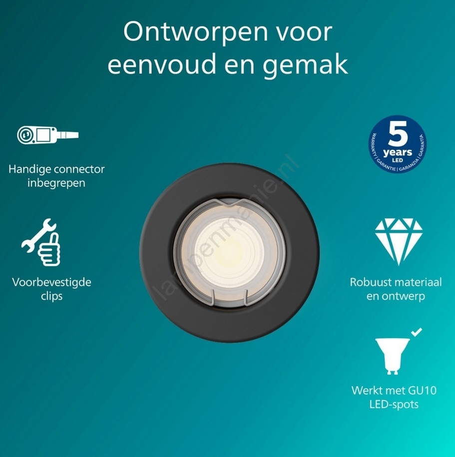Philips - Inbouwspot PERIDOT 1xGU10/7W/230V zwart kenmerkt een mooi en functioneel ontwerp.  Voor het licht is een lamp met GU10 fitting geschikt. Hier kunt u andere lampen tegen voordelige prijzen kopen. U heeft een interessante aanwinst voor uw woning.