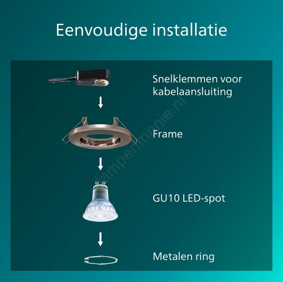 Philips - Set van 5 inbouwspots PERIDOT 1xGU10/7W/230V zilver kenmerkt een mooi en functioneel ontwerp.  Voor het licht is een lamp met GU10 fitting geschikt. Hier kunt u andere lampen tegen voordelige prijzen kopen. U heeft een interessante aanwinst voor uw woning.