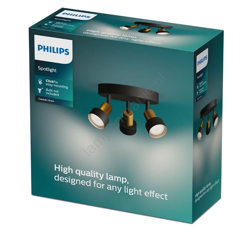 Philips - Spot CONDUIT 3xGU10/5W/230V zwart/messing kenmerkt een mooi en functioneel ontwerp.  Voor het licht is een lamp met GU10 fitting geschikt. Hier kunt u andere lampen tegen voordelige prijzen kopen. U heeft een interessante aanwinst voor uw woning.