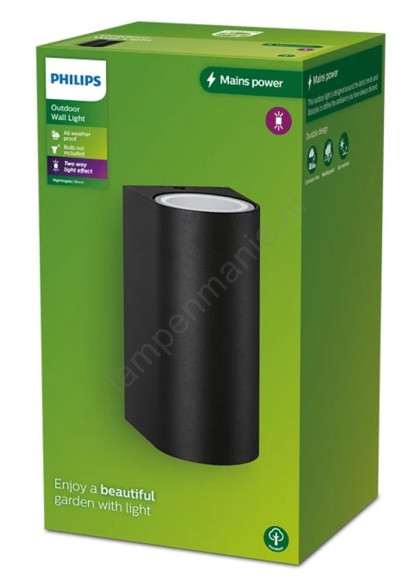 Philips - Wandlamp voor buiten NIGHTINGALE 2xGU10/35W/230V IP44 kenmerkt een mooi en functioneel ontwerp.  Voor het licht is een lamp met GU10 fitting geschikt. Hier kunt u andere lampen tegen voordelige prijzen kopen. U heeft een interessante aanwinst voor uw woning.