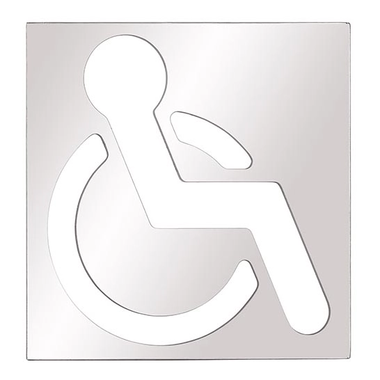 • Roestvrijstalen icoon ter aanduiding van een rolstoeltoegankelijk toilet.