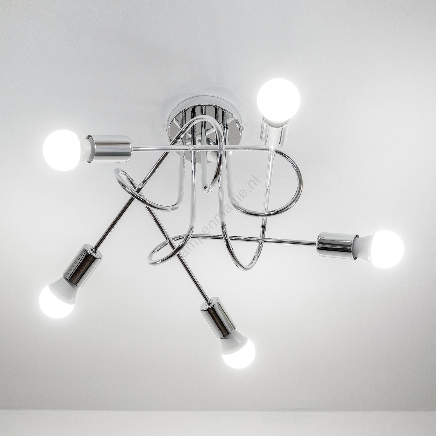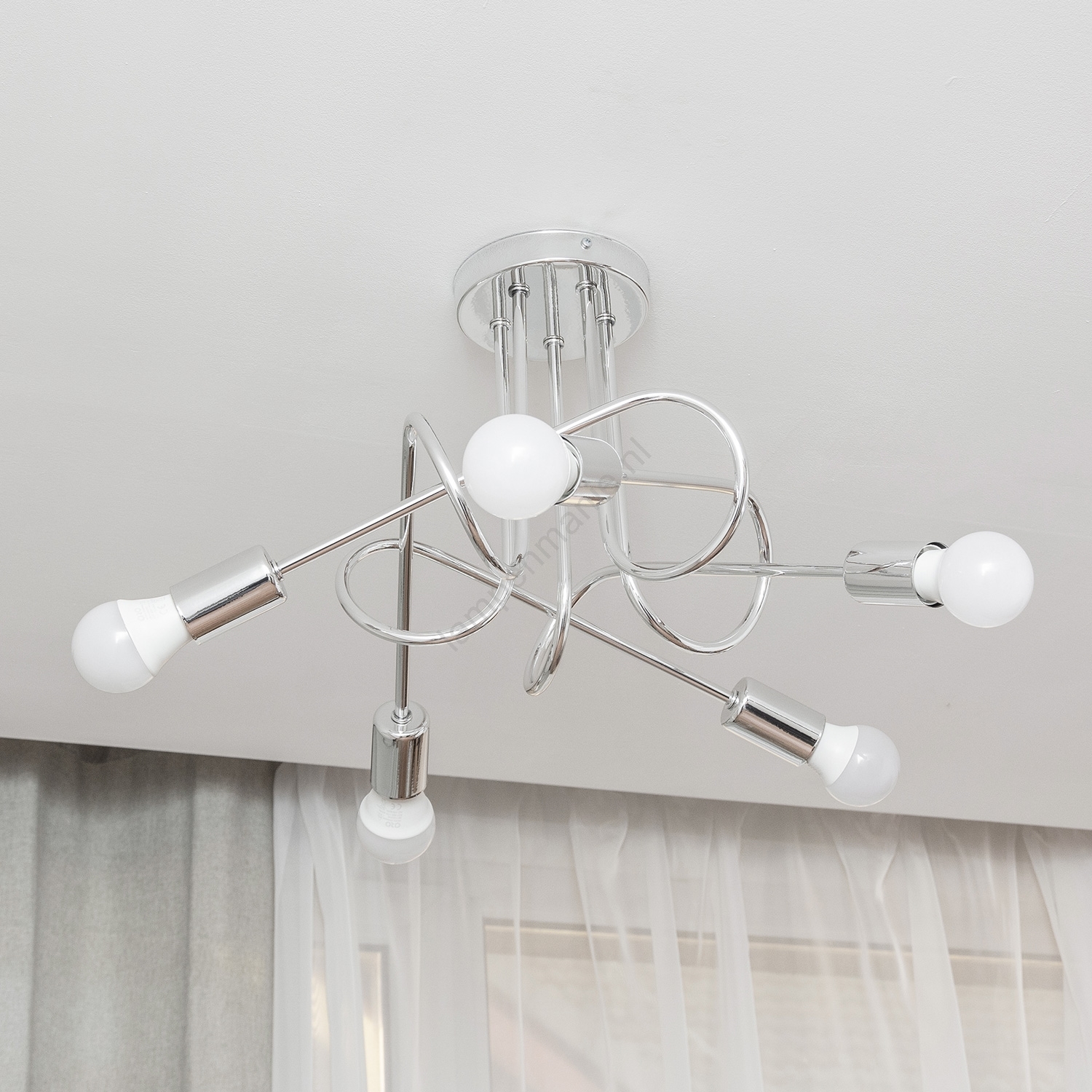 Plafondkroonluchter OXFORD 5xE27/15W/230V glanzend chroom kenmerkt een mooi en functioneel ontwerp.  Voor het licht is een lamp met E27 fitting geschikt. Hier kunt u andere lampen tegen voordelige prijzen kopen. U heeft een interessante aanwinst voor uw woning.