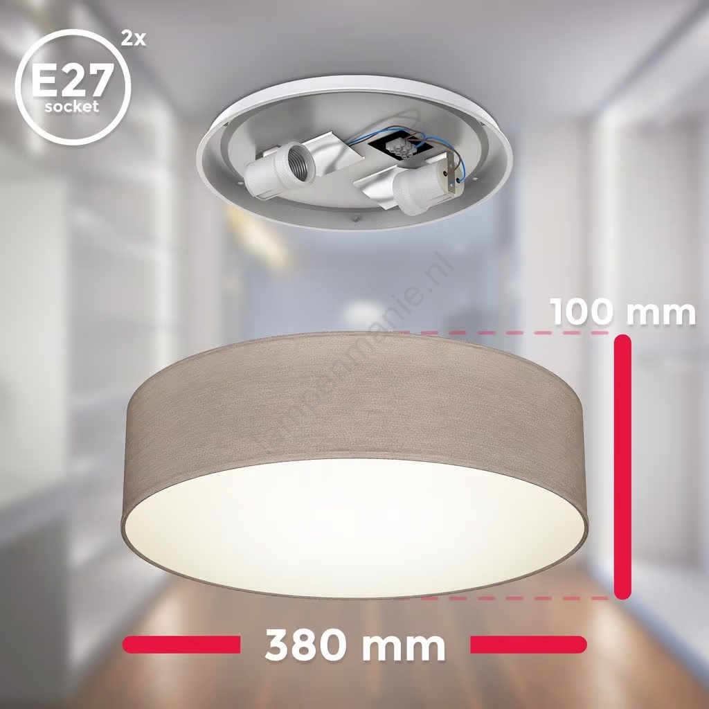 • Plafondlamp 2xE27/40W/230V, Ø 38 cm, grijs