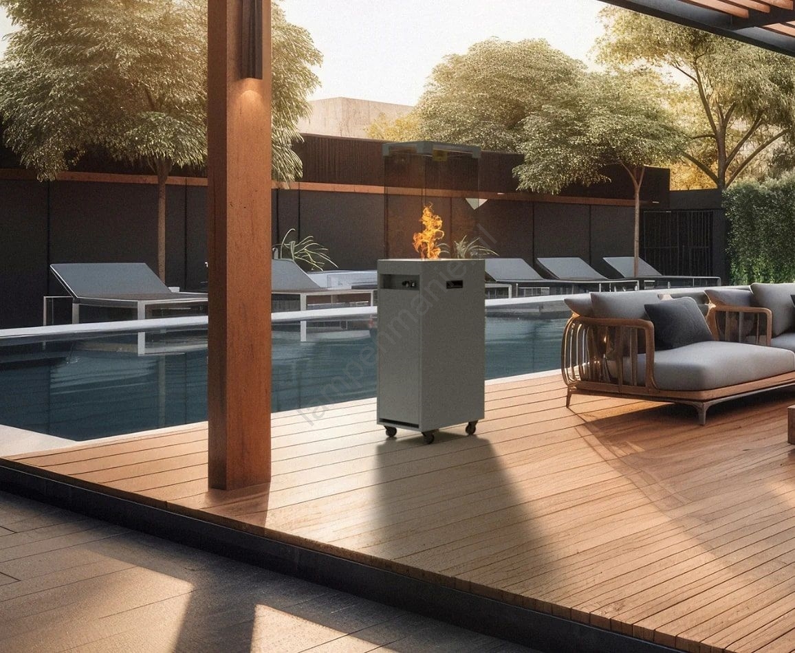 Planika - Buiten gas haard 142x36 cm 8kW 1xAAA grijs + beschermende hoes