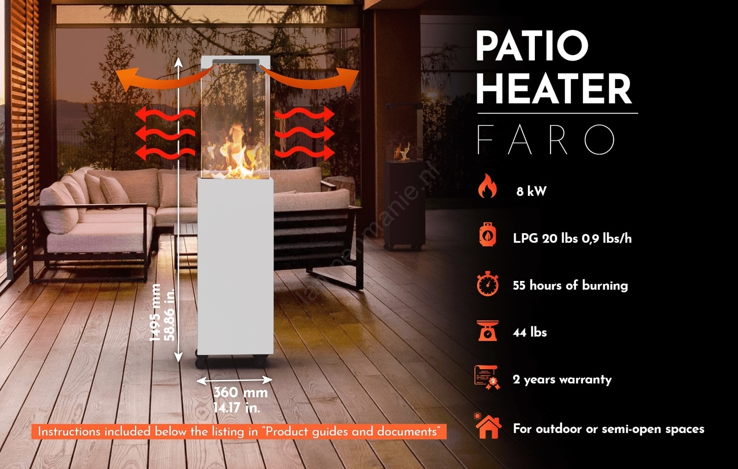 • De meegeleverde hoesbeschermt de gaskachel in alle seizoenen.