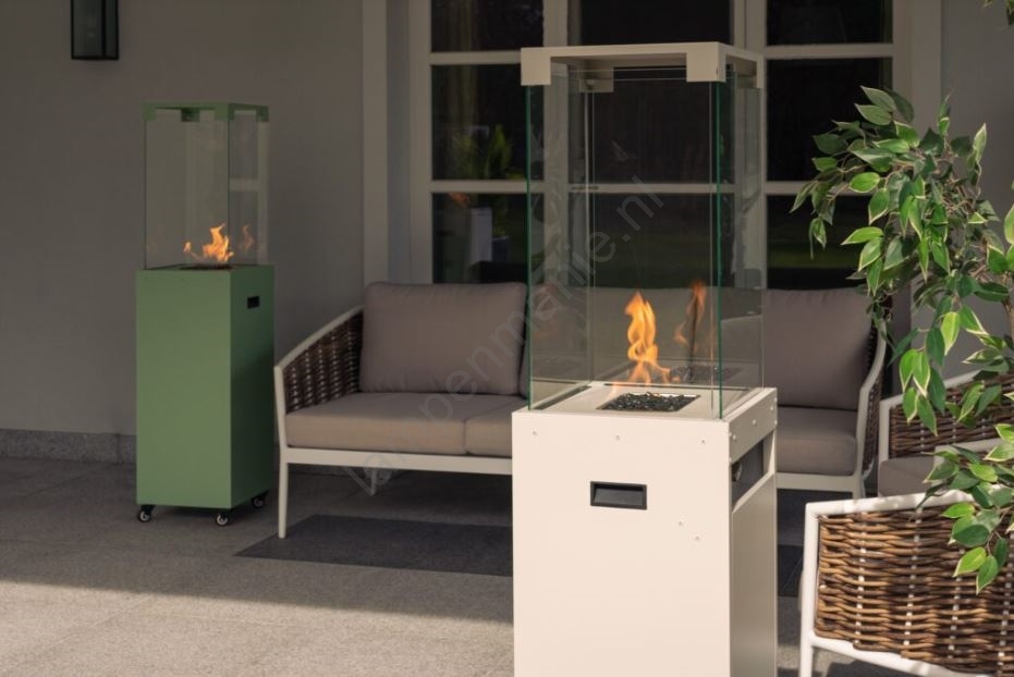 • Open haard, 4x beschermglas, siergrind, 4x wielen, 1x AAA-batterij, 1,4 m flexibele slang met een diameter van 9 mm, drukregelaar, beschermhoes.