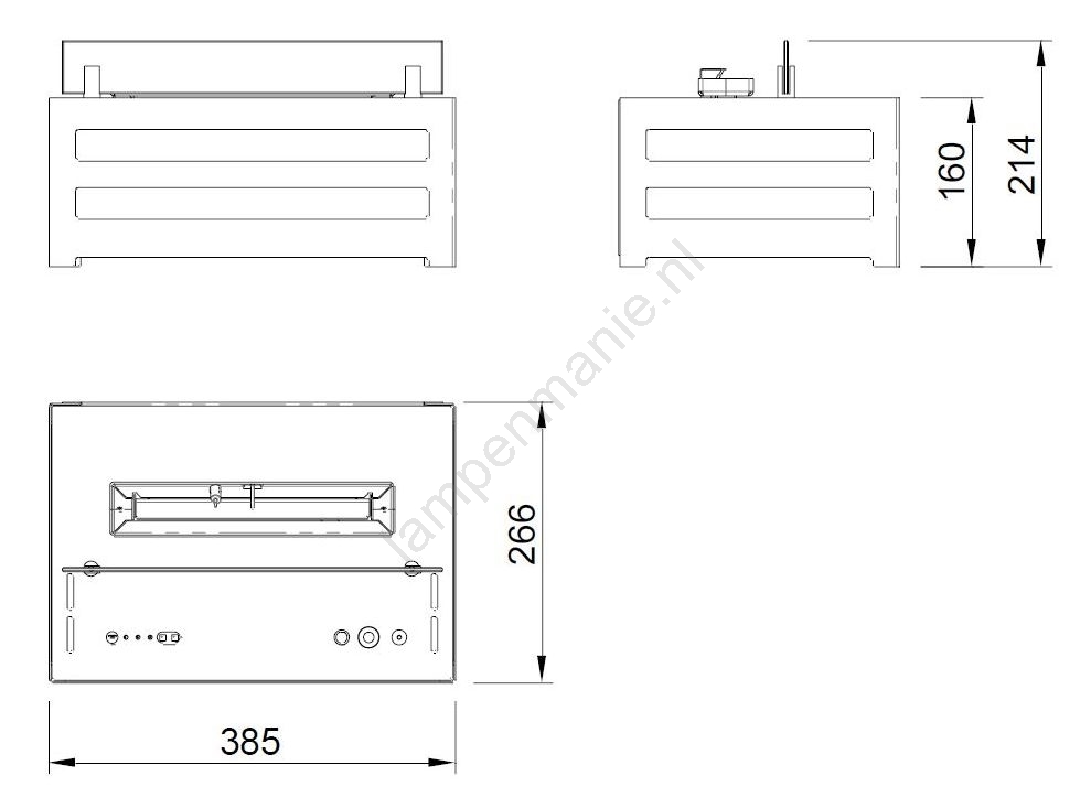 • Afmetingen haard: 21,4 x 28,5 x 26,6 cm.