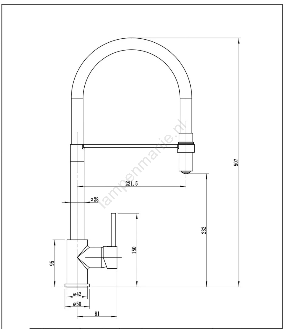 • Hoogte 507 mm – ideaal ook voor compacte keukens.