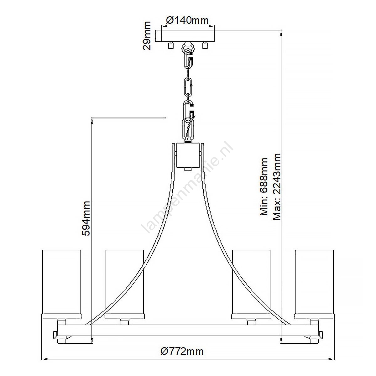 Quintiesse - Kroonluchter aan ketting ANGELO 6xE27/60W/230V eiken decor kenmerkt een mooi en functioneel ontwerp.  Voor het licht is een lamp met E27 fitting geschikt. Hier kunt u andere lampen tegen voordelige prijzen kopen. U heeft een interessante aanwinst voor uw woning.