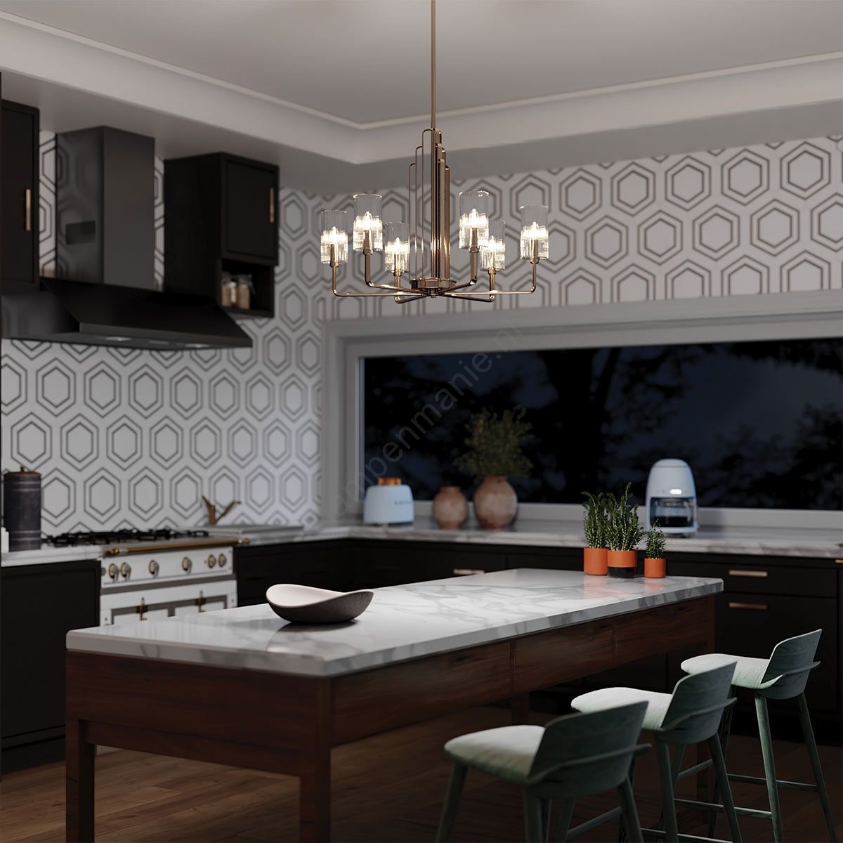 Quintiesse - Kroonluchter met stang KIMROSE 6xE14/40W/230V Ø 68,6 cm glanzend chroom kenmerkt een mooi en functioneel ontwerp.  Voor het licht is een lamp met E14 fitting geschikt. Hier kunt u andere lampen tegen voordelige prijzen kopen. U heeft een interessante aanwinst voor uw woning.
