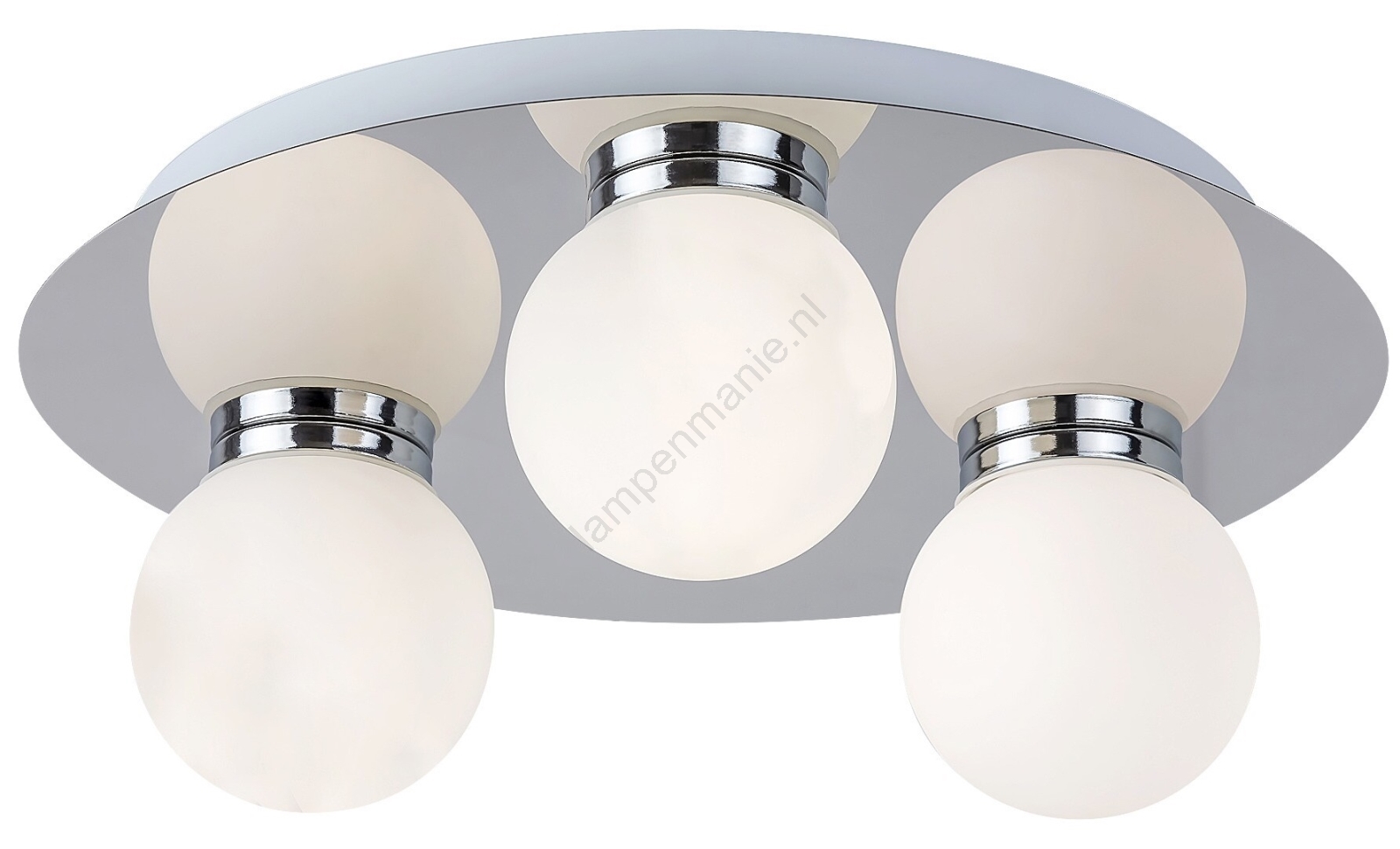 Wij bevelen de drievoudige badkamer plafondlamp Becca met haar strakke design en combinatie van chroom en wit aan voor degenen die de voorkeur geven aan bolvormige vormen. De lamp biedt gezellige verlichting bij montage aan het badkamerplafond. De plafondlamp kan alleen worden gebruikt met drie energiebesparende lichtbronnen tot 28 W, schroefdraadtype G9. Voor een modern effect kiest u een natuurlijk witte lichtbron. Het model van metaal en glas heeft een IP44-classificatie, waardoor het beschermd is tegen het binnendringen van voorwerpen met een maximale diameter van 1 mm en tegen opspattend water uit elke hoek. De diameter van de drievoudige plafondarmatuur is 300 mm. De Becca badkamerarmatuur wordt geleverd zonder lichtbron.