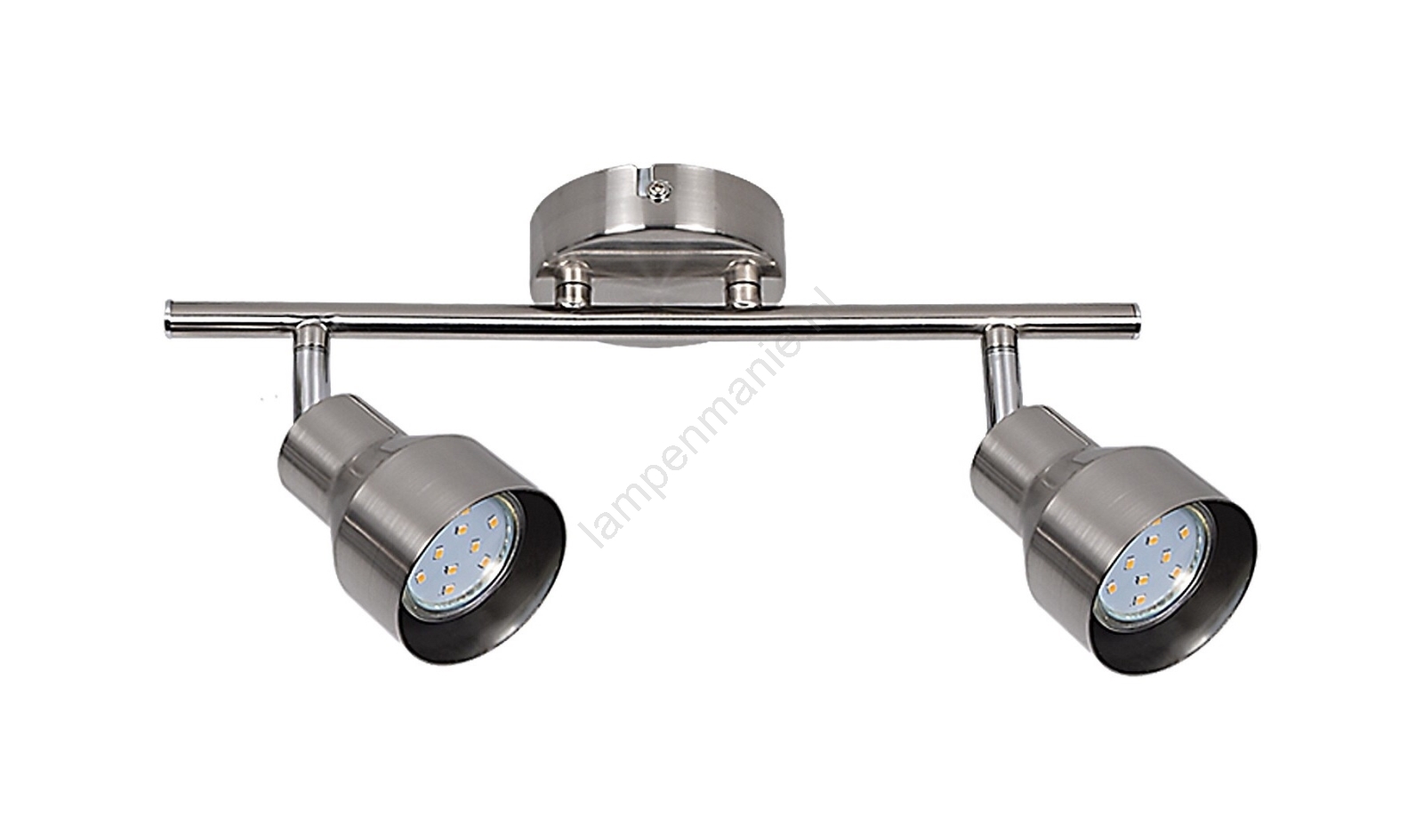 De moderne dubbele spot Blake is een uitstekende keuze voor verschillende ruimtes in uw woning: u kunt het monteren in de woonkamer, slaapkamer, eetkamer of zelfs in de keuken. Deze volledig metalen lamp in satijnchroom kan aan de muur worden bevestigd met een ronde decoratieve voet. De flexibele lampkoppen zijn geplaatst op een horizontale draagbalk die aan de decoratieve basis is bevestigd. De Blake spot is geschikt voor twee lampen met een vermogen tot 50W per stuk. Het type fitting is GU10. Afhankelijk van uw voorkeur en de plaats van installatie kunt u kiezen voor warmwit of natuurlijk wit licht. Deze spot is te bedienen met een schakelaar aan de onderzijde van de decoratieve basis. De afmetingen van deze dubbele spot zijn als volgt: breedte 340 mm, hoogte 145 mm, afstand tot het plafond 120 mm. Dit model wordt geleverd zonder lichtbron.