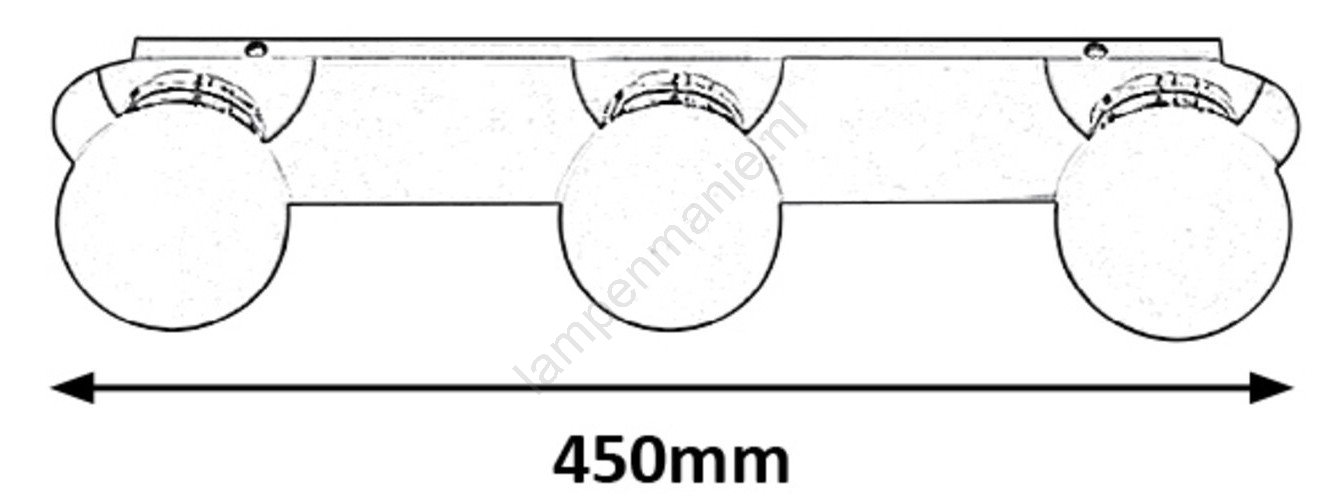 • De totale breedte van de drievoudige plafondlamp is 450 mm.