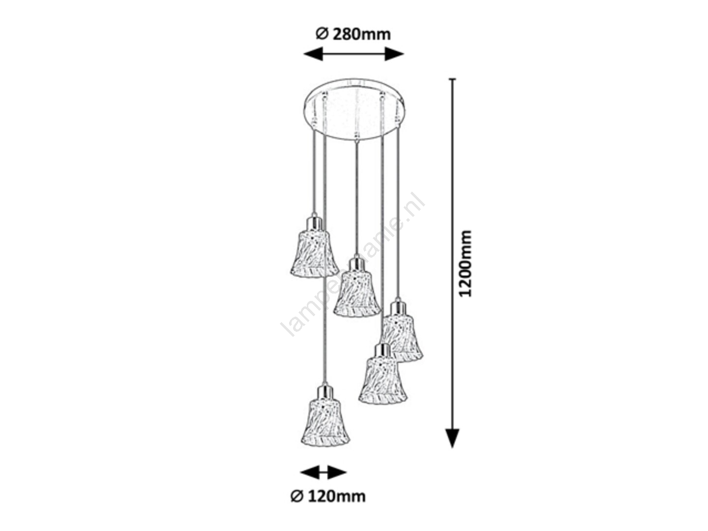 De hanglamp Hestia met 5 lampen in een klassieke stijl zal een elegant meubelstuk zijn in uw woonkamer, eetkamer of misschien slaapkamer. De chromen metalen lamp wordt aangevuld met transparante glazen kappen. De lamp kan aan het plafond worden bevestigd met een grote ronde sierplaat. Het bijzondere aan de klokvormige kappen die op verschillende hoogtes hangen, is het gedraaide effect van hun golvende oppervlak. Deze hanglamp is dankzij zijn formaat ook uitstekend geschikt voor het verlichten van ruimere ruimtes. De Hestia-lamp kan worden gebruikt met vijf lampen, elk met een vermogen tot 40W. Het type fitting is E14. Wilt u een intieme en gezellige sfeer creëren, kies dan voor warme witte lichtbronnen voor deze lamp. De afmetingen van de hanglamp Hestia met 5 lampen zijn als volgt: de diameter van elke kap is 120 mm, de totale diameter van de lamp is 280 mm, de afstand tot het plafond is 1.200 mm. Dit model wordt geleverd zonder lichtbronnen.