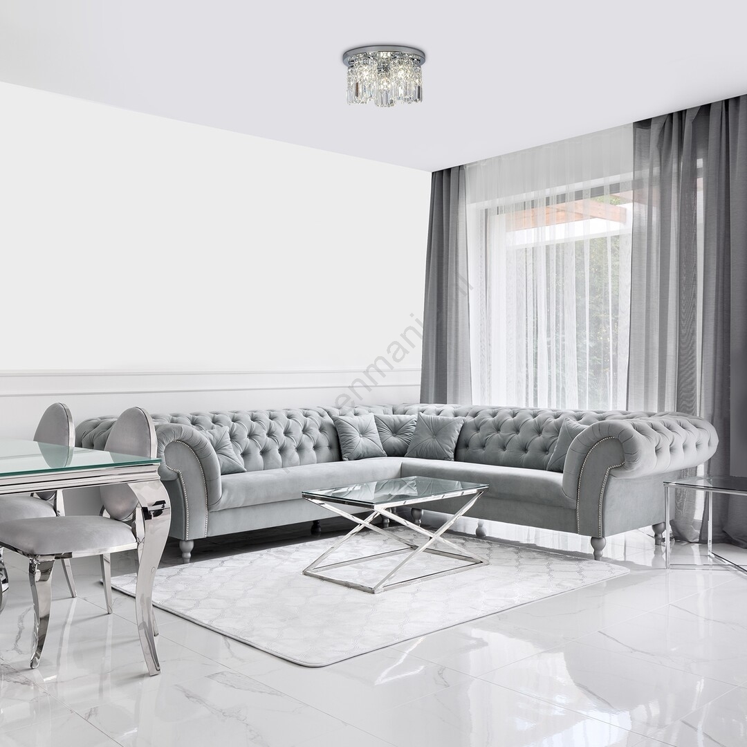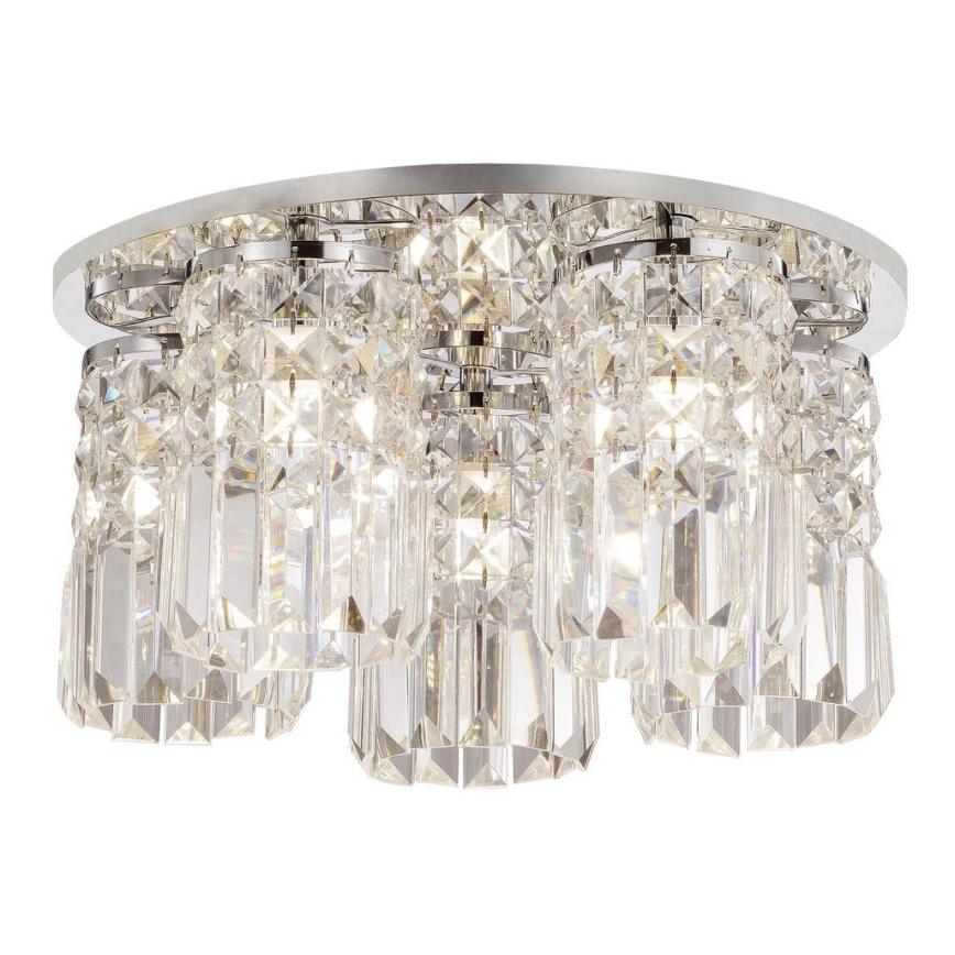 Plafondlamp Rosanna, die een klassieke stijl vertegenwoordigt, is een elegante en indrukwekkende aanvulling op de verlichting van een woning in klassieke stijl. De metalen lamp in chromen kleur wordt aangevuld met een kap van transparant kristalglas. De lamp kan aan het plafond worden bevestigd met een grote ronde decoratieve voet. Dankzij het heldere licht en het elegante ontwerp creëert de Rosanna-lamp een prachtige sfeer. Deze plafondlamp is geschikt voor vijf lampen, elk met een vermogen tot 40W. Het type fitting is G9. Voor een intieme en gezellige sfeer kiest u voor deze lamp warmwit licht. De diameter van deze lamp is 380 mm, de afstand tot het plafond is 215 mm. Dit model wordt geleverd zonder lichtbronnen.