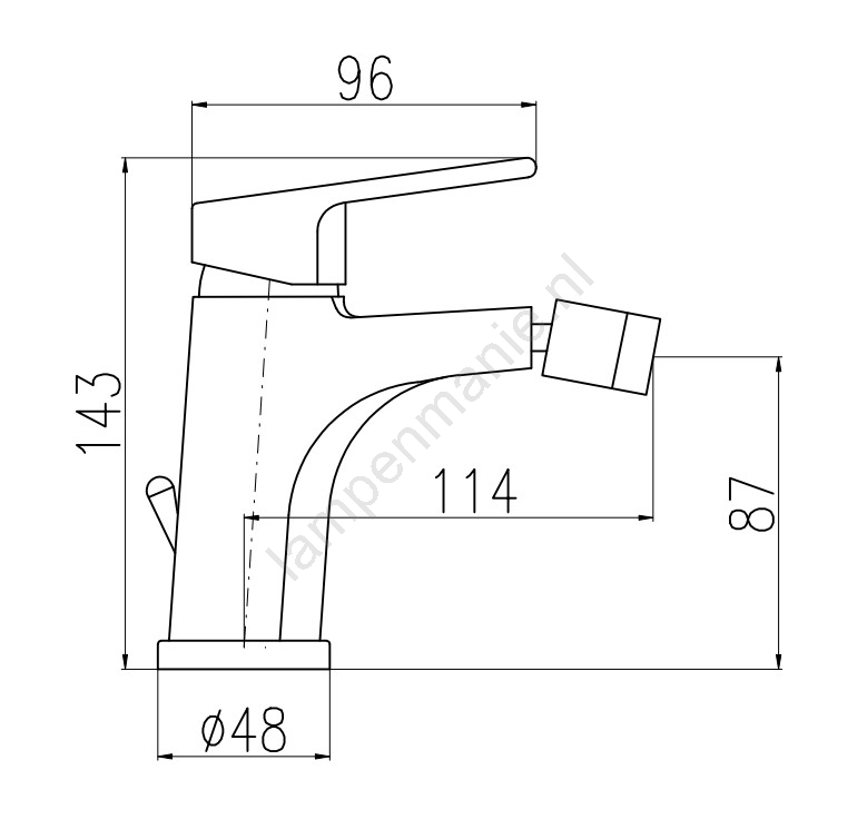 • Opbouw bidetmengkraan met uitloop.