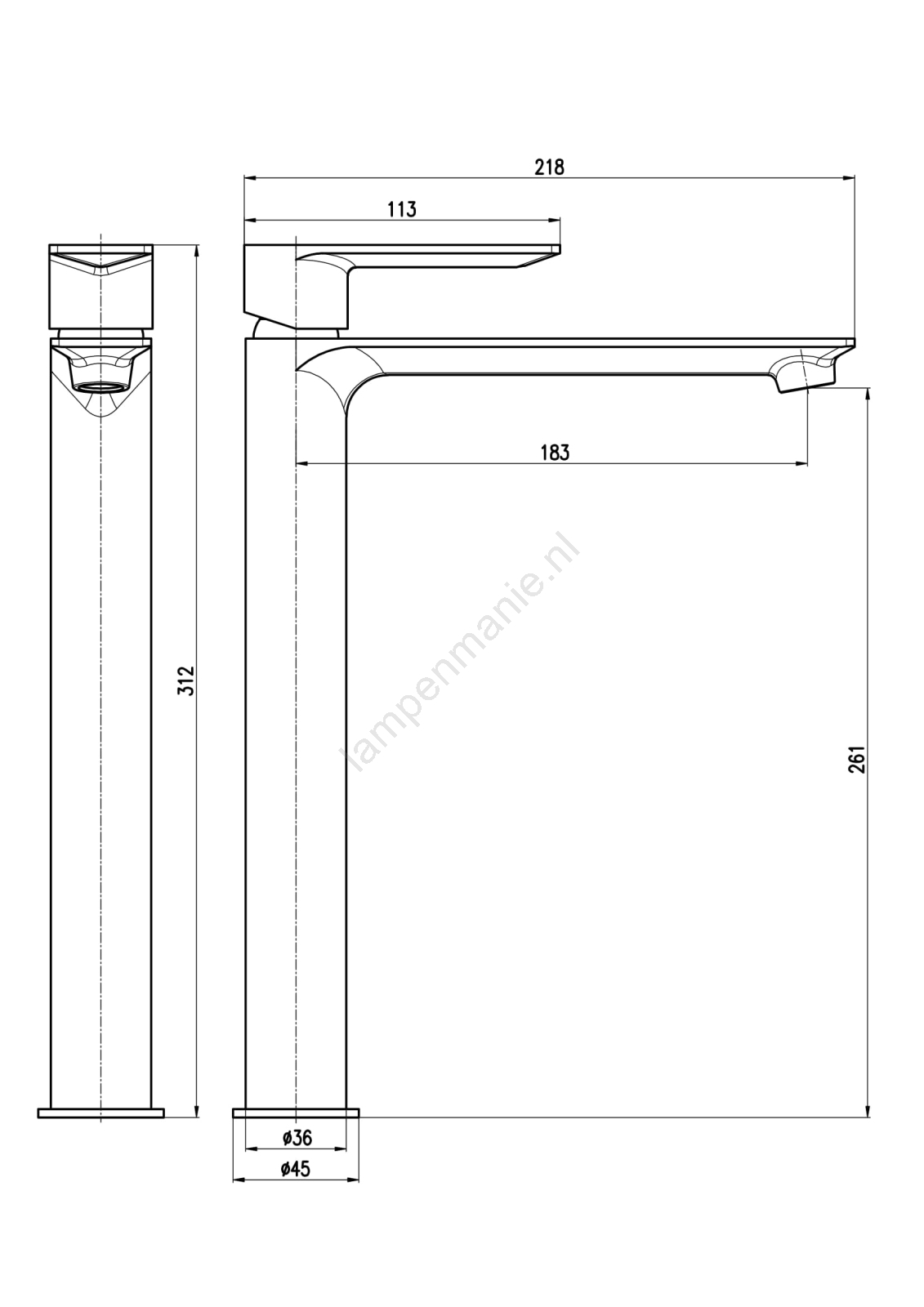 • Staande wastafelkraan zonder waste.