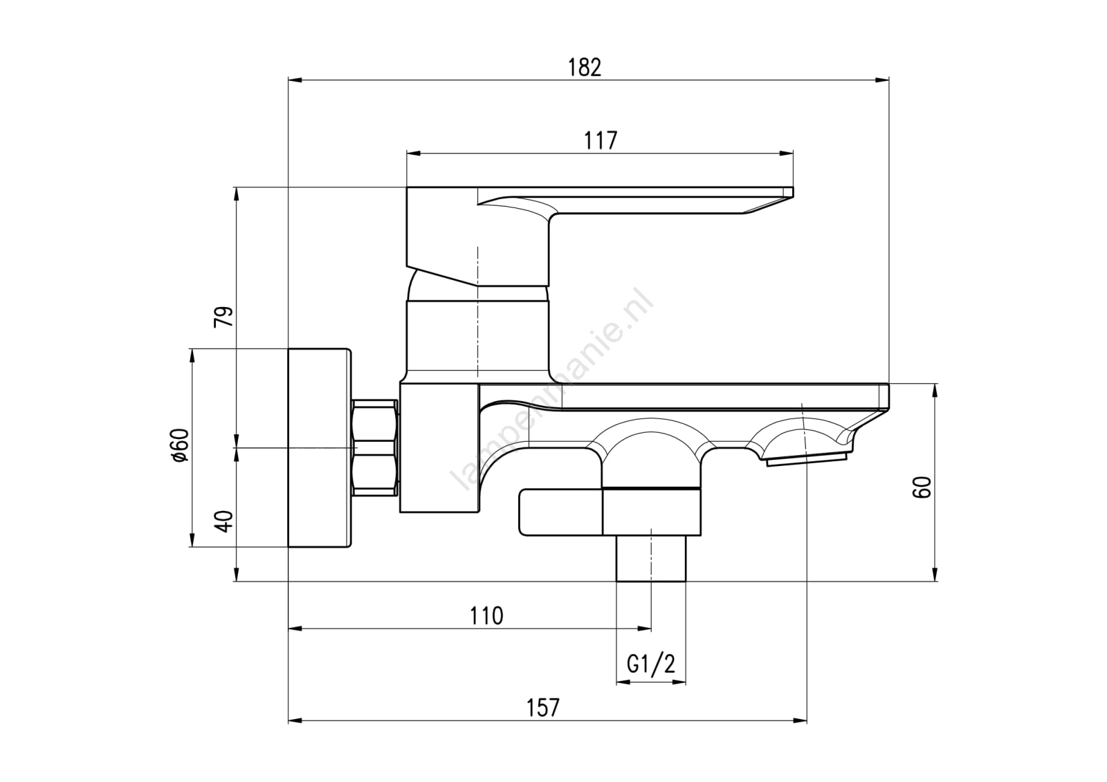 • Aansluiting slang: G 1/2".