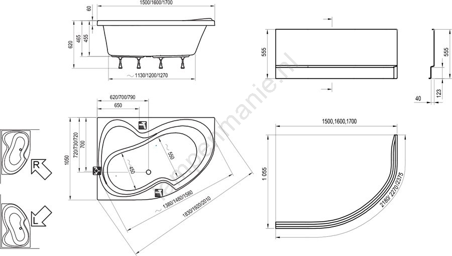 Asymmetrische badkuipen, Badkamer, Badkuipen, Hoekbaden, Merken, Ravak