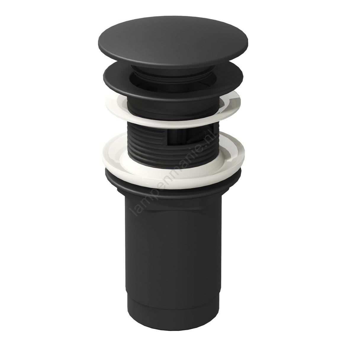 • De zwarte plug, geplaatst in een wastafel met overloop, raden we aan te combineren met een zwarte kraan, een sifon en badkameraccessoires.
