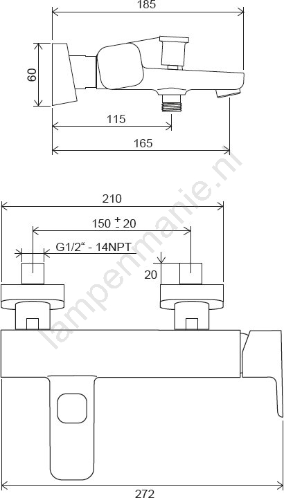 • De hartafstand van 150 mm maakt eenvoudige installatie op de meeste standaardleidingen mogelijk.