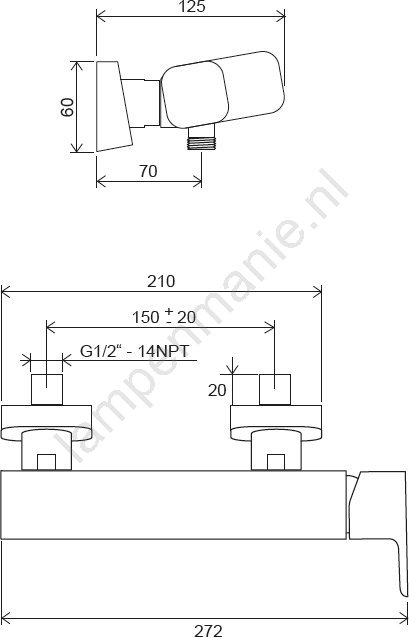 • Een hartafstand van 150 mm maakt eenvoudige installatie op de meeste standaardleidingen mogelijk.