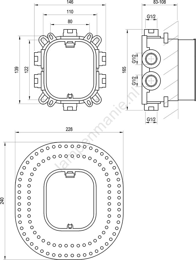 • Installatie op gipsplaat of in een traditionele gemetselde scheidingswand.