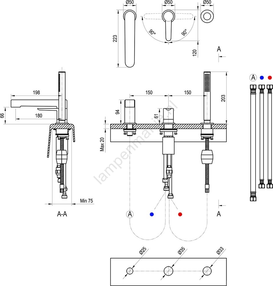 • Deze 3-gats badkraan is een elegante aanvulling op elke badkamer.