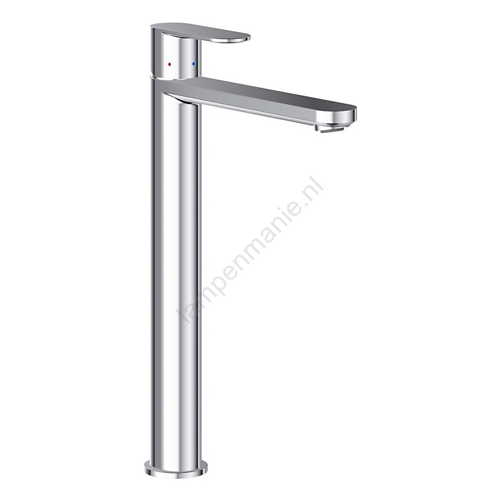 • De wastafelkraan Crome in glanzend chroom heeft een extra verlengde hoogte van 300 mm, ideaal voor opzetwastafels.
